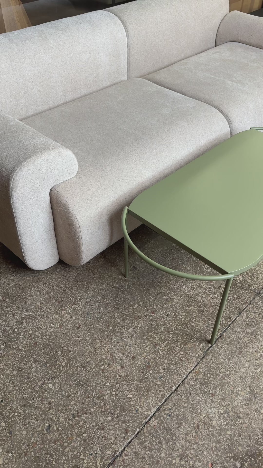 The Emit M Coffee Table, designed by Max Voytenko, the creative director of the Ukrainian brand Kint, is a functional and stylish piece from the Emit series. This table is characterized by its small, oval tabletop, which takes the form of a truncated oval. The unique shape not only enhances its aesthetic appeal but also visually complements the metal frame that supports it, creating a harmonious and modern design. Additionally, the cutouts in the tabletop serve as practical handles, making it easy to move the table around, combining both form and function in a seamless manner. The Emit M Coffee Table can stand as a striking standalone piece or be integrated into various interior settings.
