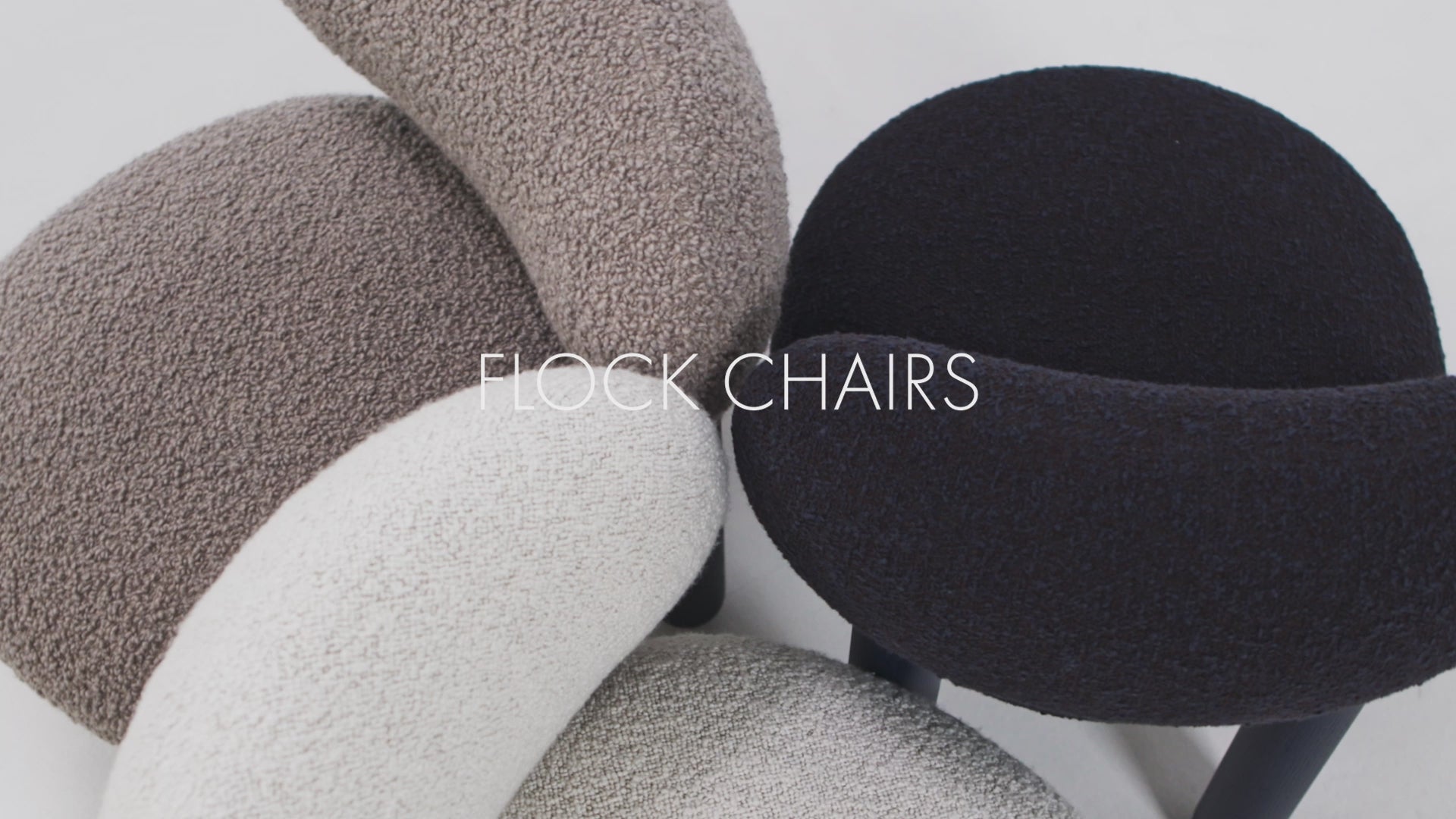 The "Flock" collection embodies the idea that home should be a haven of comfort, a sanctuary, and a gathering place adorned with personalized, character-rich, and visually striking statement objects. The name "Flock" reflects its role as a tranquil oasis and central meeting space within the home, where soft, voluptuous forms, natural materials, and pleasing tactile surfaces create an ambiance of warmth and cocooning.